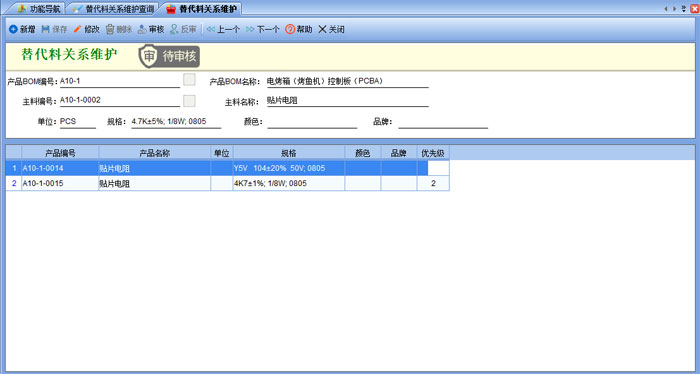 基本信息:產(chǎn)品信息,供應商,客戶,產(chǎn)品分類,BOM,替代料維護,工序等基本信息的設置;