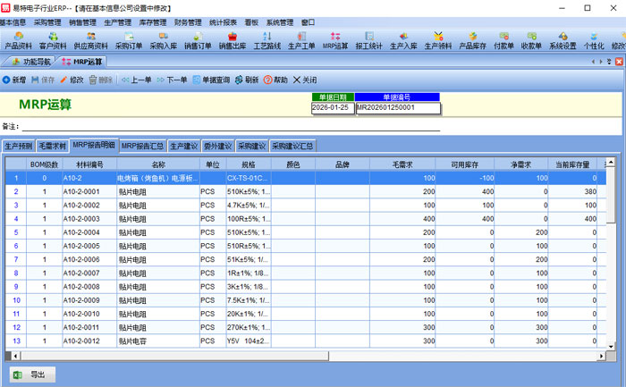 根據(jù)BOM生成物料需求,對比當前的庫存和在途數(shù)計算物料需求;