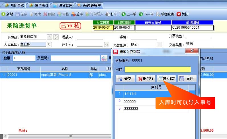 很多電子產(chǎn)品,機器設(shè)備,數(shù)碼類產(chǎn)品,每個產(chǎn)品都有一個唯一的序列號或叫串號,如何利用進銷存進行管理這個序列號的庫存,進行出入庫掃描操作呢?
