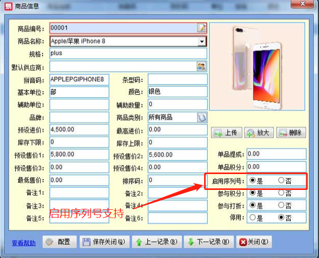 易特進銷存IT數(shù)碼通訊版,支持序列號商品和普通商品進行出入庫操作,首先在商品資料上設(shè)置,啟用序列號選【是】,對于普通商品不需在序列號管理