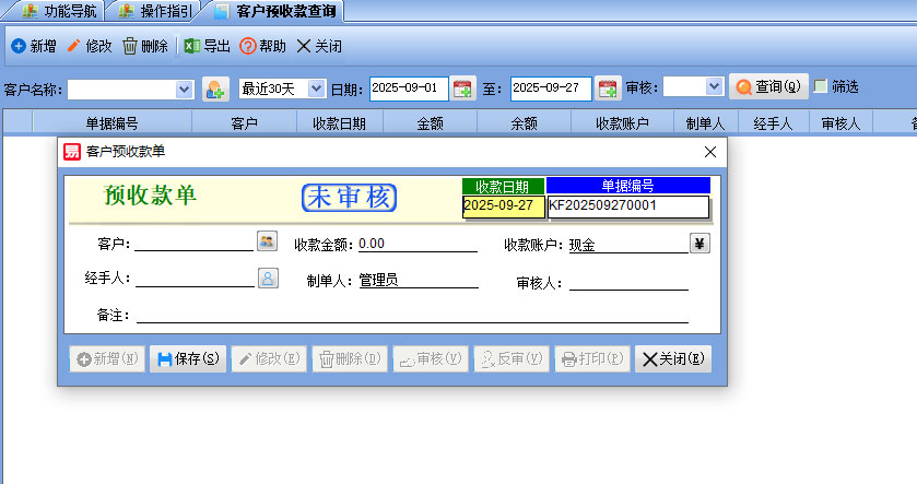 2.錄入銷售訂單:ERP操作員在系統(tǒng)中錄入銷售訂單,訂單狀態(tài)通常為“已審核”或“待付款”,系統(tǒng)會(huì)根據(jù)預(yù)設(shè)的收款條件自動(dòng)計(jì)算預(yù)收款金額。