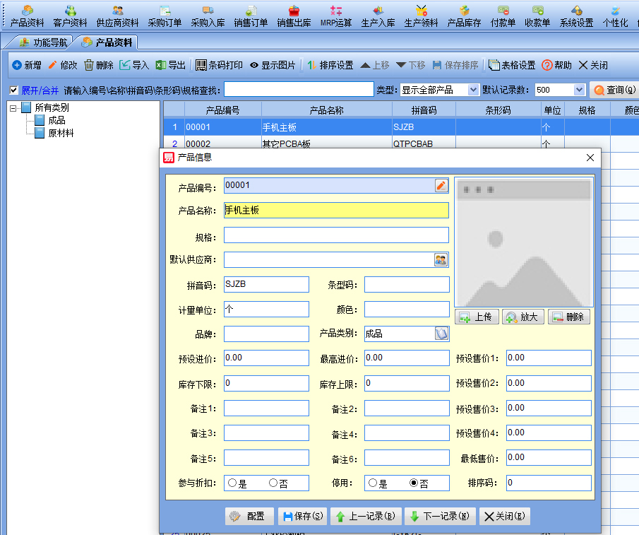 二、【基本信息】-【產(chǎn)品資料】,建立好產(chǎn)品資料,就是要生產(chǎn)的產(chǎn)品。