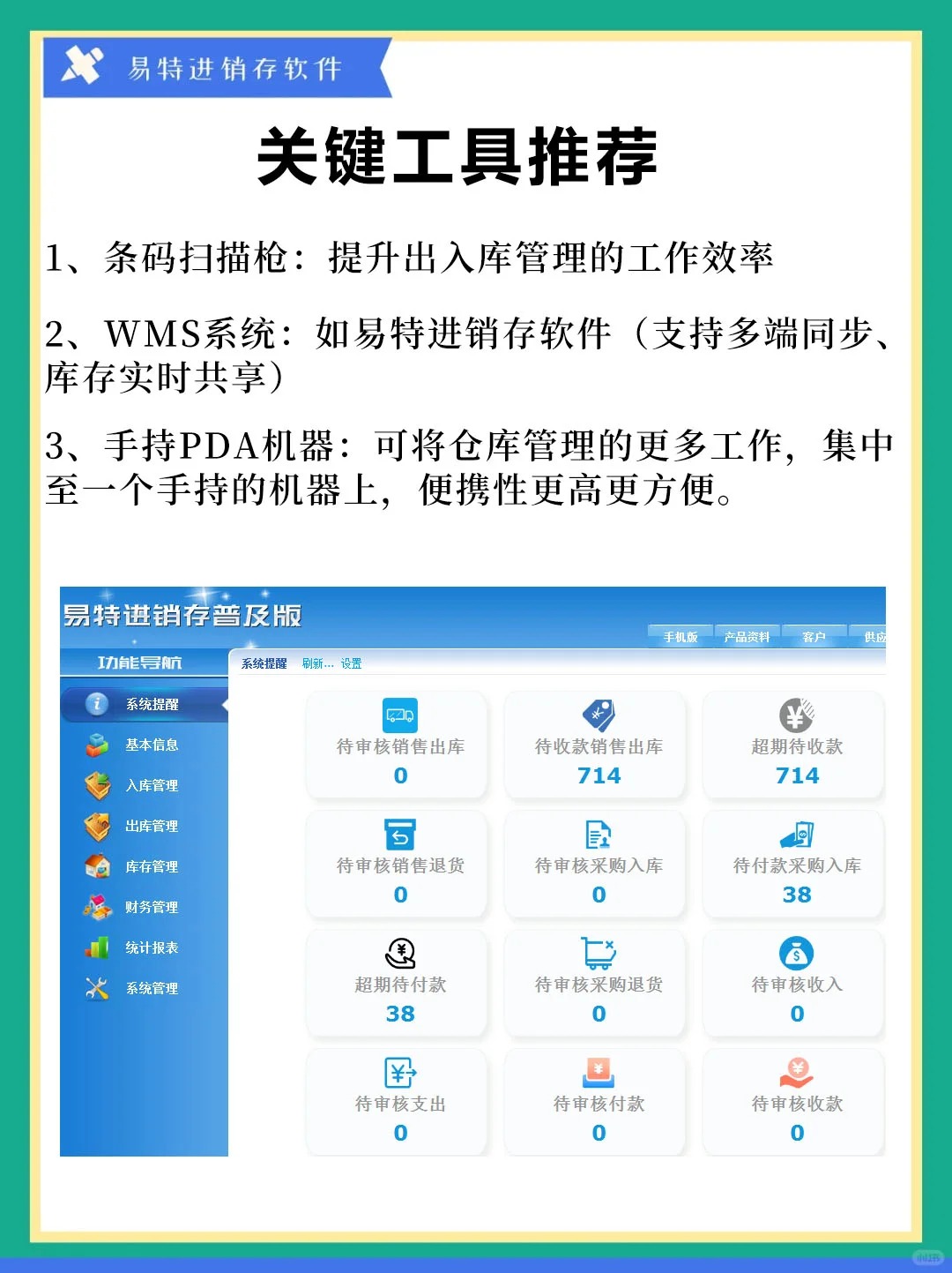 (2)WMS系統(tǒng):如易特進銷存軟件(支持多端同步、庫存實時共享)