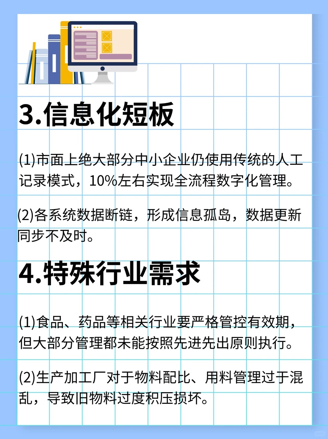 (1)食品、藥品等相關行業(yè)要嚴格管控有效期,但大部分管理都未能按照先進先出原則執(zhí)行。