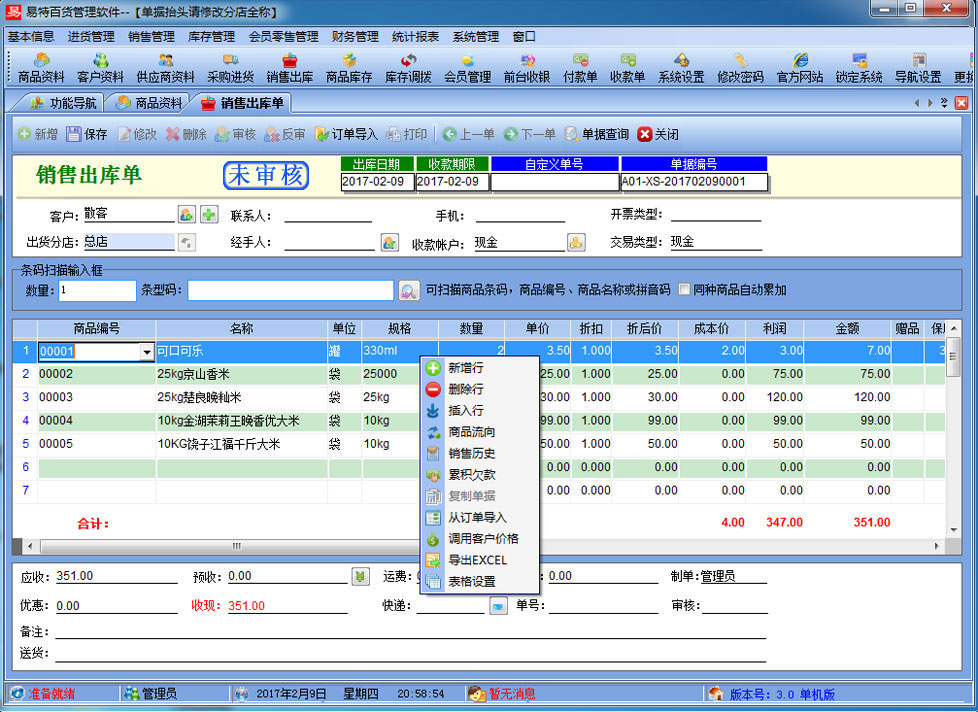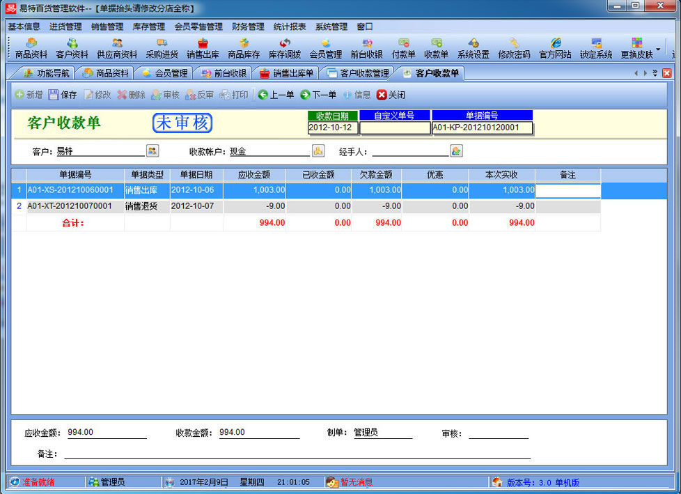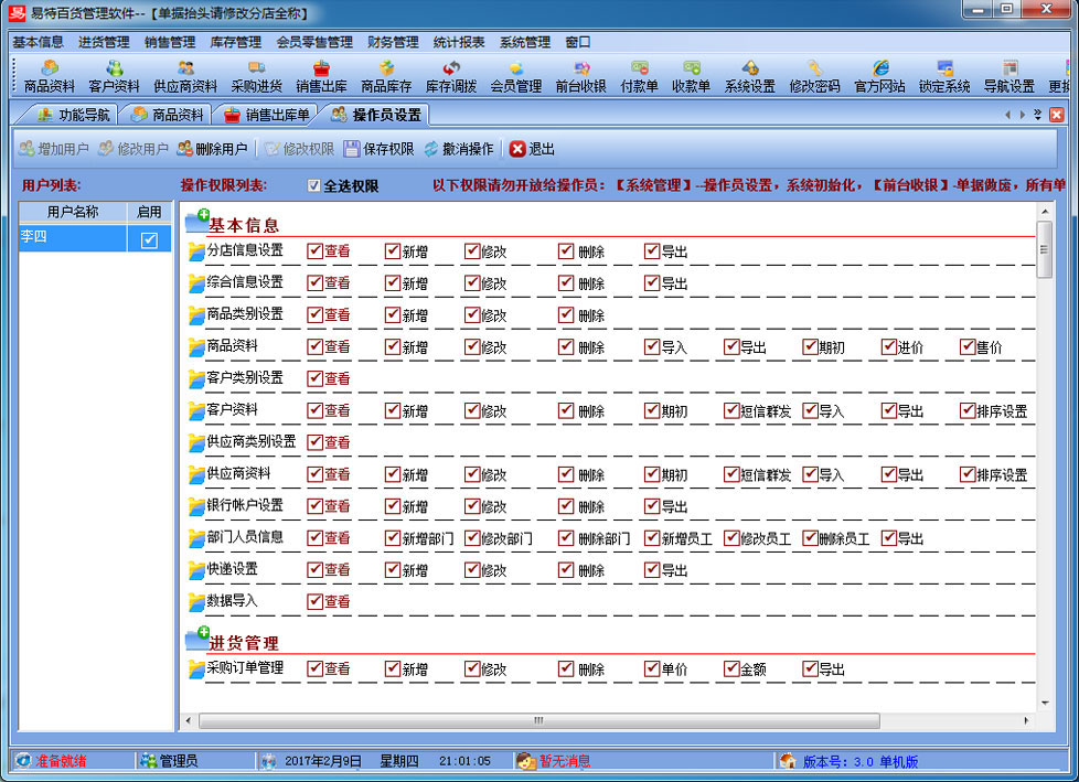 易特百貨管理系統(tǒng)是一款專業(yè)的百貨銷售管理軟件,其中包含商品銷售管理系統(tǒng) ,庫存管理系統(tǒng)(倉庫管理系統(tǒng)),財(cái)務(wù)和報(bào)表系統(tǒng)等子模塊。軟件界面設(shè)計(jì)簡潔,美觀,其人性化的軟件流程,使普通用戶不需培訓(xùn)也能很快掌握軟件操作使用方法,上手極易。強(qiáng)大報(bào)表與集成查詢功能是本軟件的最大特色,所有功能在用戶需要的使用地方自然體現(xiàn),不用打開多個窗口重復(fù)查詢。適用于商貿(mào)公司,個體門店等用于商業(yè)銷售管理, 庫存管理,財(cái)務(wù)管理等,客戶管理,員工管理等場合,是您企業(yè)進(jìn)行信息化管理的強(qiáng)大工具。 二、增強(qiáng)功能:分店獨(dú)立成本價,分店銷售定價管理、分店數(shù)據(jù)和共享功能、會員管理、前臺收銀,短信群發(fā) 三、連鎖功能:可單店用,多店用,基本資料可共享或私有化(即同一個商品及客戶是否其它店面可用) ,門店間調(diào)撥,分門店設(shè)置商 品的售價(即不同門店使用不同的銷售價格),分門店設(shè)置商品的最高庫存與最低庫存并可以分門店自動顯示庫存報(bào)警等。 四、軟件特色: 1、支持POS銷售?梢愿鶕(jù)需要選配打印機(jī)、讀卡器、會員卡、條碼槍、錢箱、顧客顯示屏及小票打印機(jī);可以根據(jù)自已喜好設(shè)計(jì)各 種有特性的打印格式。銷售時可以適時掌握每一個商品的當(dāng)前庫存數(shù),銷售成本、銷售毛利; 2、支持會員管理?稍O(shè)置會員級別,不同級別可以適用不同的價格與折扣.可以自動計(jì)算會員的累計(jì)消費(fèi)、累計(jì)積分、兌現(xiàn)積分及剩余 積分情況。過生日的會員可自動提醒; 3、支持設(shè)置商品的"最低售價"功能,銷售時若單價低于"最低售價"則不允許銷售; 4、在選擇商品時可以多選,即可以一次可以選擇多個商品; 5、可以設(shè)置單價、數(shù)量及銷售金額的核算精度即設(shè)置小數(shù)點(diǎn)位數(shù); 6、支持食品有效期管理,入庫根據(jù)生產(chǎn)日期計(jì)算出過期日期,并可以設(shè)置在到期前多少天提醒。 7、支持多單位,可設(shè)置除基本單位以外多個單位換算,多個單位均可獨(dú)立的條碼和成本價,售價、積分比率等。 8、可以適時顯示往來單位(供貨商,客戶)的應(yīng)收帳款、應(yīng)付帳款、預(yù)收帳款、預(yù)付帳款; 9、可以實(shí)現(xiàn)預(yù)收款沖應(yīng)收款、預(yù)付款沖應(yīng)付款;可以按單據(jù)結(jié)算應(yīng)收帳款、應(yīng)付帳款; 10、員工提成方式多樣,可針對每個商品設(shè)置提成兩種提成三種方式:單品提成,銷售額提成率及銷售毛利提成率,員工的業(yè)績及提成一目了然; 11、無處不在的顯示商品圖片的功能.支持圖片存放數(shù)據(jù)庫中,也可以存放軟件目錄文件夾中; 12、支持手工盤點(diǎn)(直接輸入需要盤點(diǎn)的商品)、自動盤點(diǎn)(直接按商品類別提取庫存)及盤點(diǎn)機(jī)盤點(diǎn); 13、權(quán)限設(shè)置功能強(qiáng)大.可以設(shè)置每個員工的菜單操作權(quán)、單據(jù)操作權(quán)、分店操作權(quán)及其他操作權(quán)限{比如:查看成本權(quán)(即能不能看到進(jìn)價及毛利)、售價調(diào)整權(quán)(即能不能在銷售時修改售價及折扣)等}; 14、支持?jǐn)?shù)據(jù)導(dǎo)入導(dǎo)出(比如:從其它軟件中導(dǎo)入期初庫存,商品資料,客戶,供應(yīng)商,會員等...... 15、 所有單據(jù)支持自定義設(shè)計(jì)格式、打印前預(yù)覽,并且可以導(dǎo)出為Excel文件,然后根據(jù)您的實(shí)際需要進(jìn)行特別編排處理; 16、功能強(qiáng)大的各類統(tǒng)計(jì)報(bào)表,為您提供詳盡的營業(yè)報(bào)告,讓您對商品進(jìn)、銷、存及利潤等財(cái)務(wù)狀況了如指掌; 17、支持自動上傳下載數(shù)據(jù)及斷網(wǎng)重連功能。大大方便了在網(wǎng)絡(luò)不穩(wěn)定的情況下使用本軟件; 18、升級智能化。您只需輕點(diǎn)鼠標(biāo),便可通過互聯(lián)網(wǎng)實(shí)現(xiàn)軟件的升級,免除您升級之苦。 |