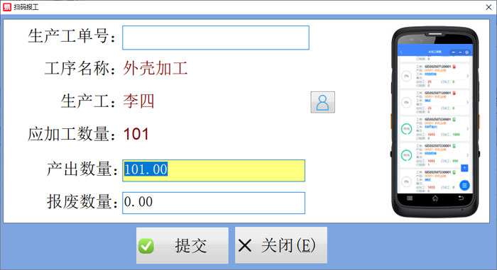 掃碼報(bào)工后可一鍵生成計(jì)件工單;