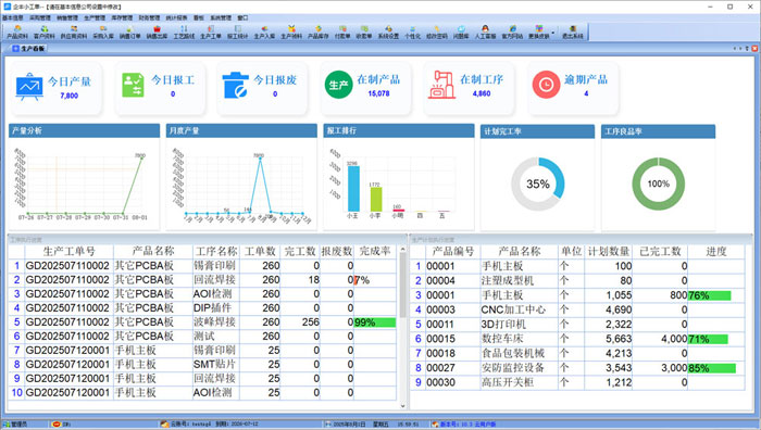 生產(chǎn)管理:生產(chǎn)看板,生產(chǎn)計(jì)劃,生產(chǎn)工單,工藝路線,掃碼報(bào)工,計(jì)件工資等;